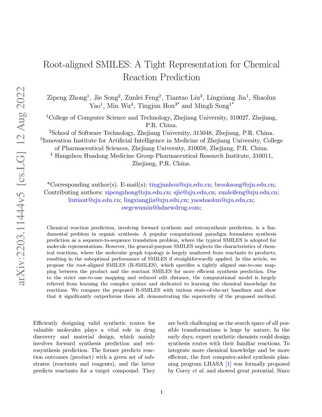 Root-aligned SMILES: A Tight Representation for Chemical Reaction