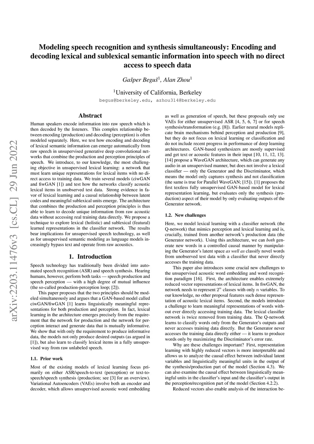 Human speakers encode information into raw speech which is then decoded by the listeners. This complex relationship between encoding (production) and decoding (perception) is often modeled separately. Here, we test how encoding and decoding of lexical semantic information can emerge automatically from raw speech in unsupervised generative deep convolutional networks that combine the production and perception principles of speech. We introduce, to our knowledge, the most challenging objective in unsupervised lexical learning: a network that must learn unique representations for lexical items with no direct access to training data. We train several models (ciwGAN and fiwGAN arXiv:2006.02951) and test how the networks classify acoustic lexical items in unobserved test data. Strong evidence in favor of lexical learning and a causal relationship between latent codes and meaningful sublexical units emerge. The architecture that combines the production and perception principles is thus able to learn to decode unique information from raw acoustic data without accessing real training data directly. We propose a technique to explore lexical (holistic) and sublexical (featural) learned representations in the classifier network. The results bear implications for unsupervised speech technology, as well as for unsupervised semantic modeling as language models increasingly bypass text and operate from raw acoustics.