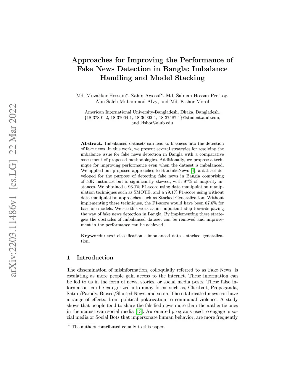 Bangla: Imbalance Handling and Model Stacking