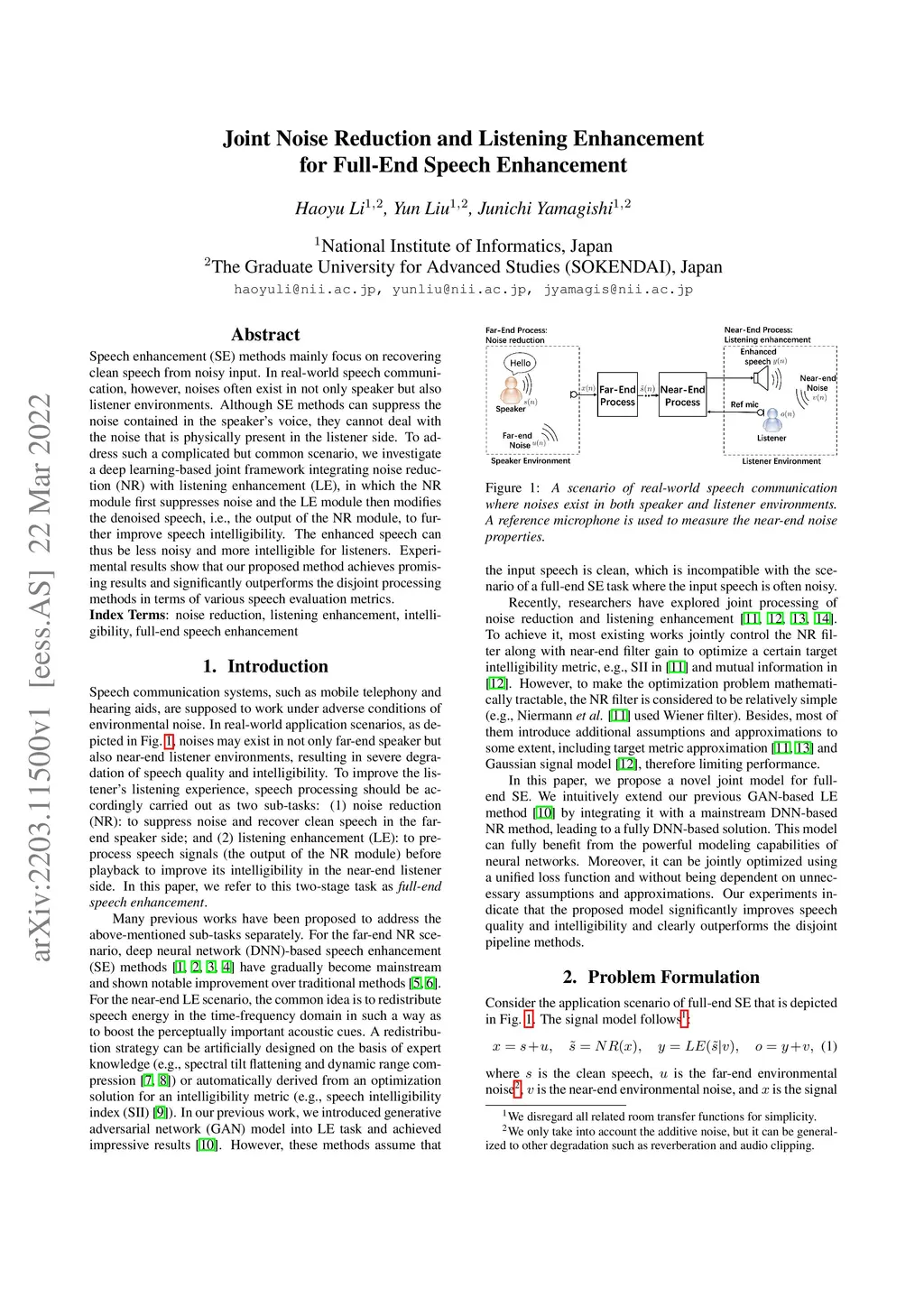 Joint Noise Reduction and Listening Enhancement for Full-End Speech