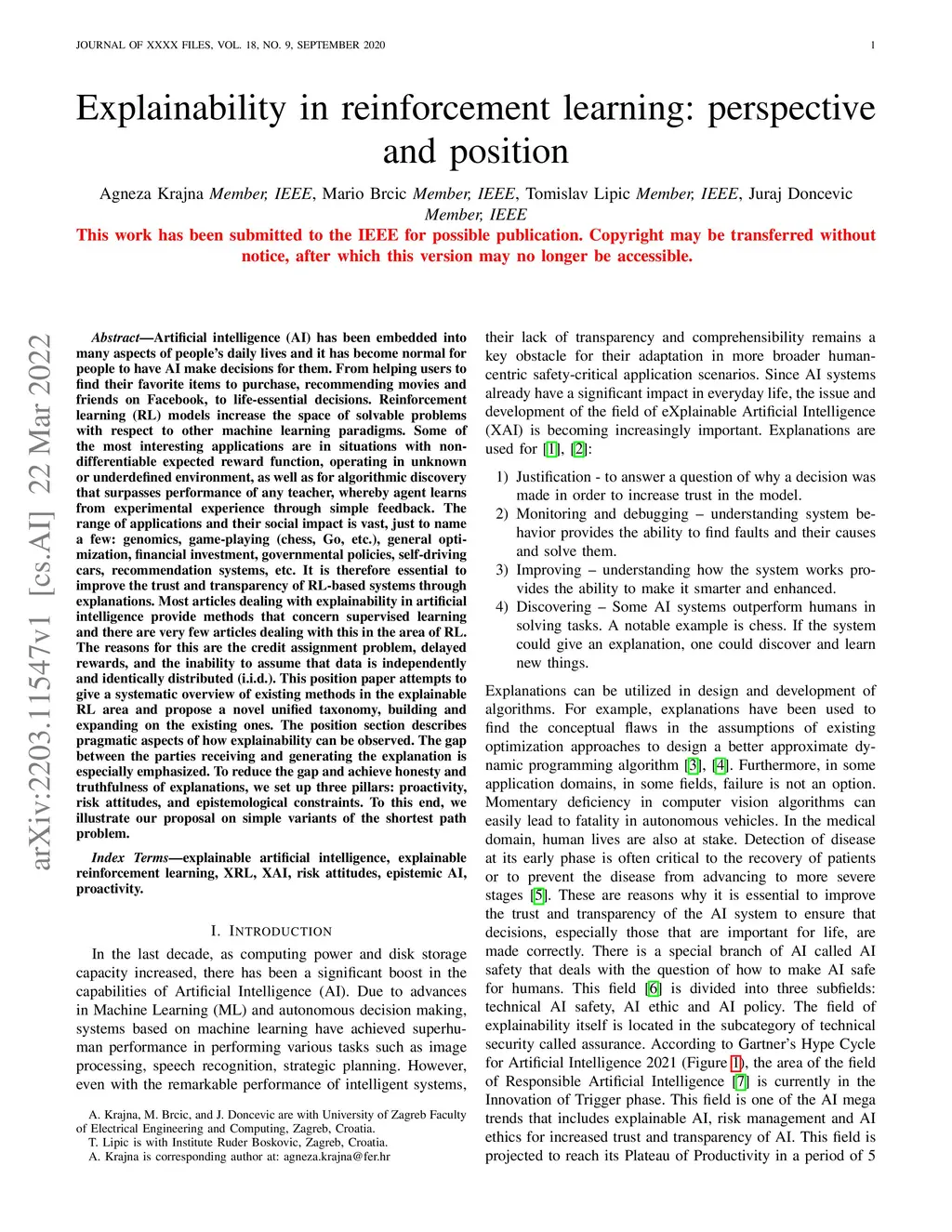 Artificial intelligence (AI) has been embedded into many aspects of people's daily lives and it has become normal for people to have AI make decisions for them. Reinforcement learning (RL) models increase the space of solvable problems with respect to other machine learning paradigms. Some of the most interesting applications are in situations with non-differentiable expected reward function, operating in unknown or underdefined environment, as well as for algorithmic discovery that surpasses performance of any teacher, whereby agent learns from experimental experience through simple feedback. The range of applications and their social impact is vast, just to name a few: genomics, game-playing (chess, Go, etc.), general optimization, financial investment, governmental policies, self-driving cars, recommendation systems, etc. It is therefore essential to improve the trust and transparency of RL-based systems through explanations. Most articles dealing with explainability in artificial intelligence provide methods that concern supervised learning and there are very few articles dealing with this in the area of RL. The reasons for this are the credit assignment problem, delayed rewards, and the inability to assume that data is independently and identically distributed (i.i.d.). This position paper attempts to give a systematic overview of existing methods in the explainable RL area and propose a novel unified taxonomy, building and expanding on the existing ones. The position section describes pragmatic aspects of how explainability can be observed. The gap between the parties receiving and generating the explanation is especially emphasized. To reduce the gap and achieve honesty and truthfulness of explanations, we set up three pillars: proactivity, risk attitudes, and epistemological constraints. To this end, we illustrate our proposal on simple variants of the shortest path problem.