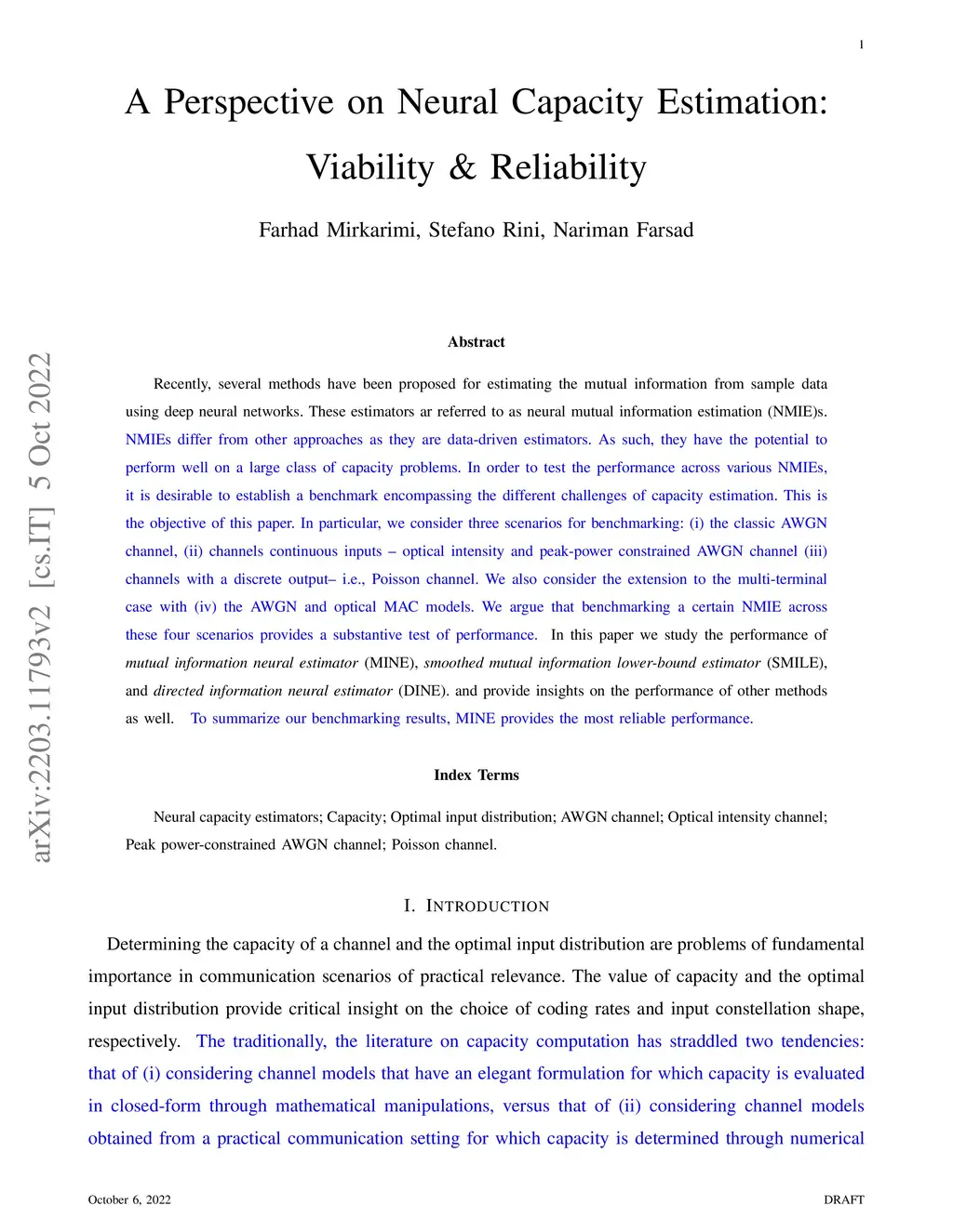 A Perspective on Neural Capacity Estimation: Viability and Reliability