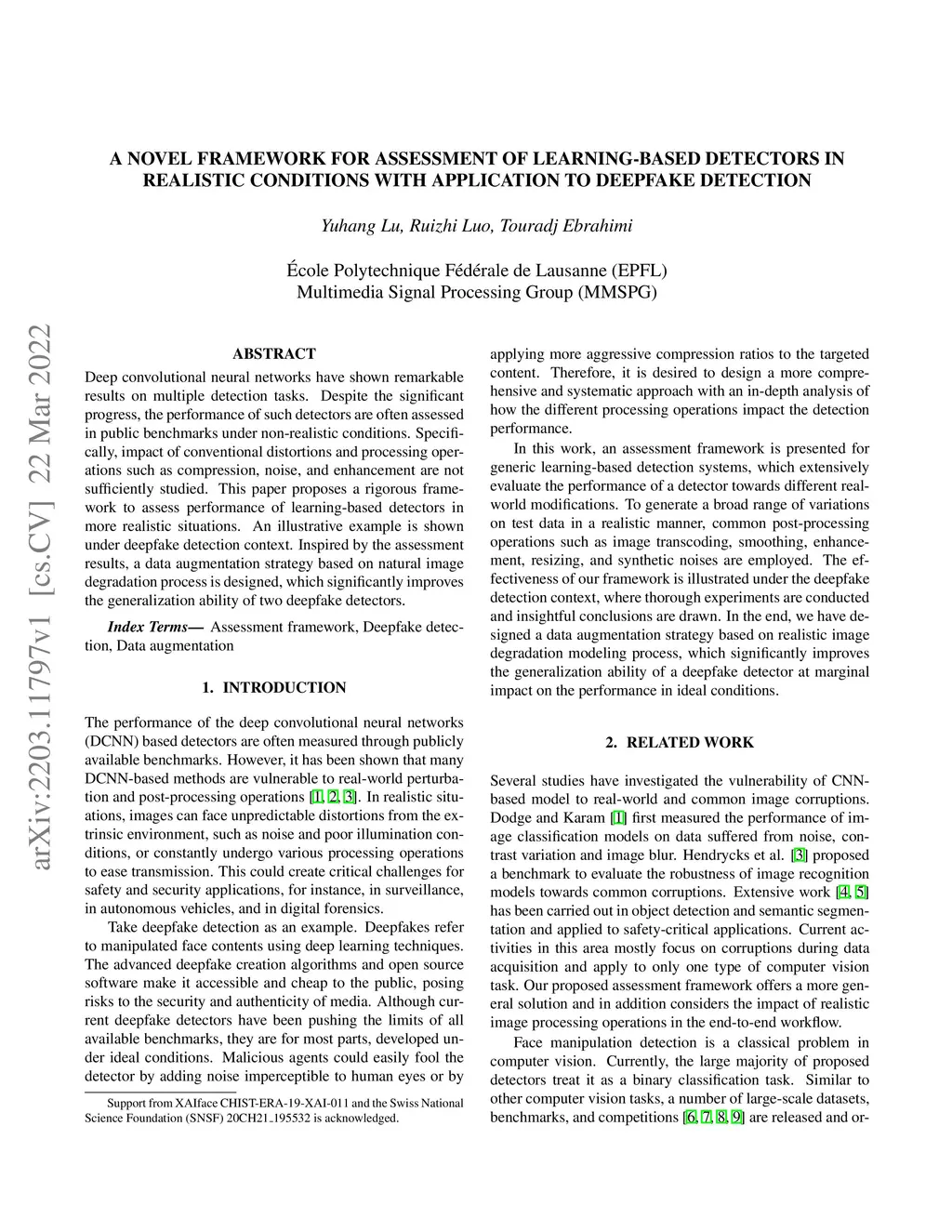 Deep convolutional neural networks have shown remarkable results on multiple detection tasks. Despite the significant progress, the performance of such detectors are often assessed in public benchmarks under non-realistic conditions. Specifically, impact of conventional distortions and processing operations such as compression, noise, and enhancement are not sufficiently studied. This paper proposes a rigorous framework to assess performance of learning-based detectors in more realistic situations. An illustrative example is shown under deepfake detection context. Inspired by the assessment results, a data augmentation strategy based on natural image degradation process is designed, which significantly improves the generalization ability of two deepfake detectors.