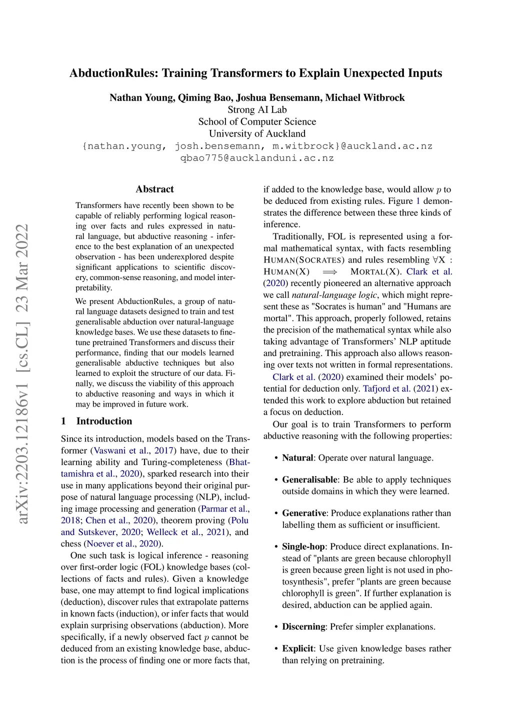 AbductionRules: Training Transformers to Explain Unexpected Inputs