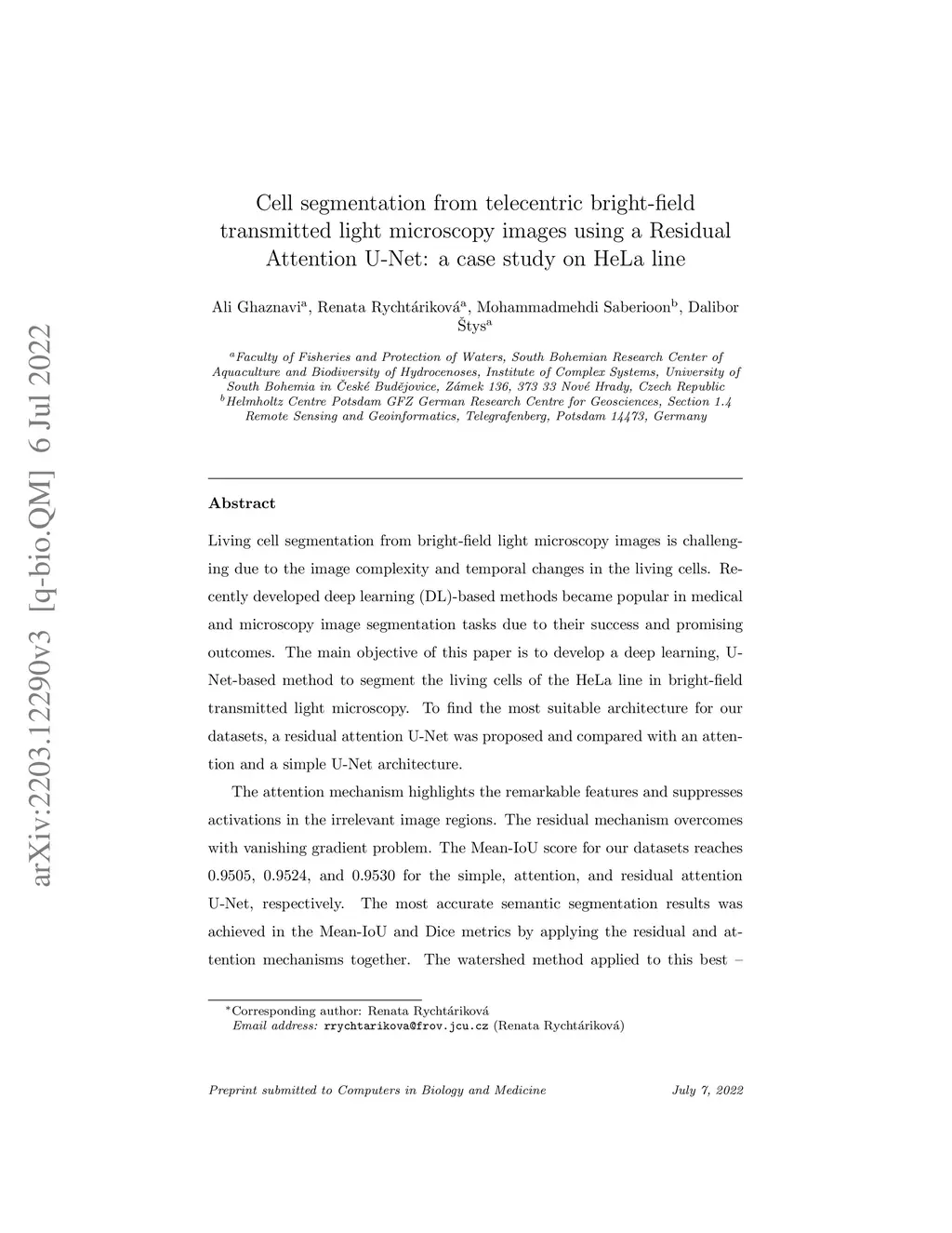 microscopy images using a Residual Attention U-Net: a case study on HeLa line