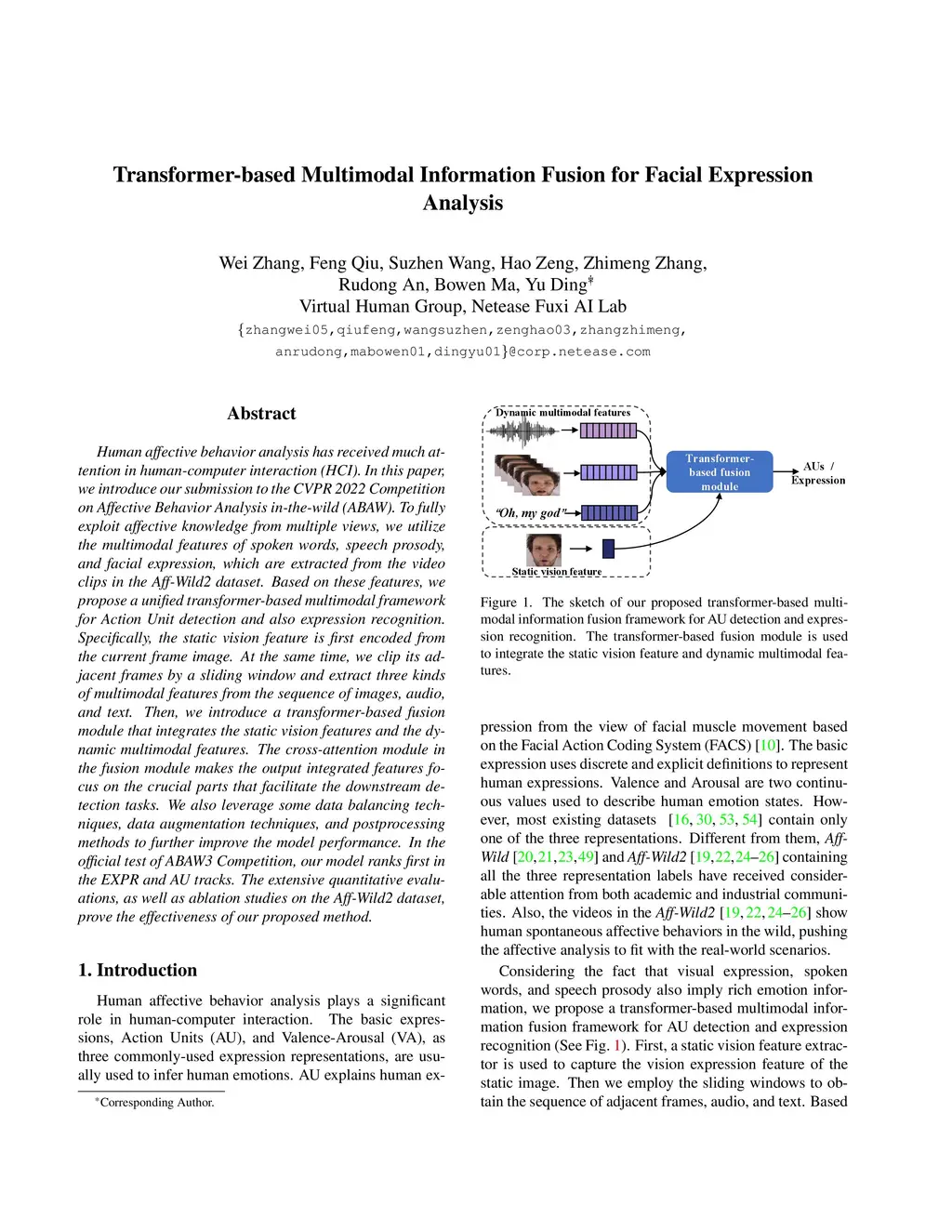 Transformer-based Multimodal Information Fusion for Facial Expression