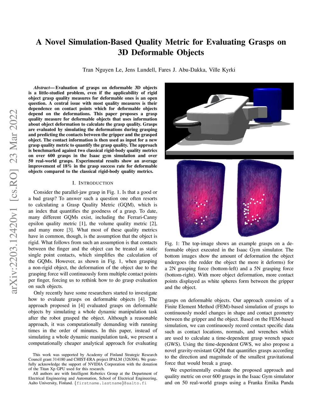 A Novel Simulation-Based Quality Metric for Evaluating Grasps on 3D