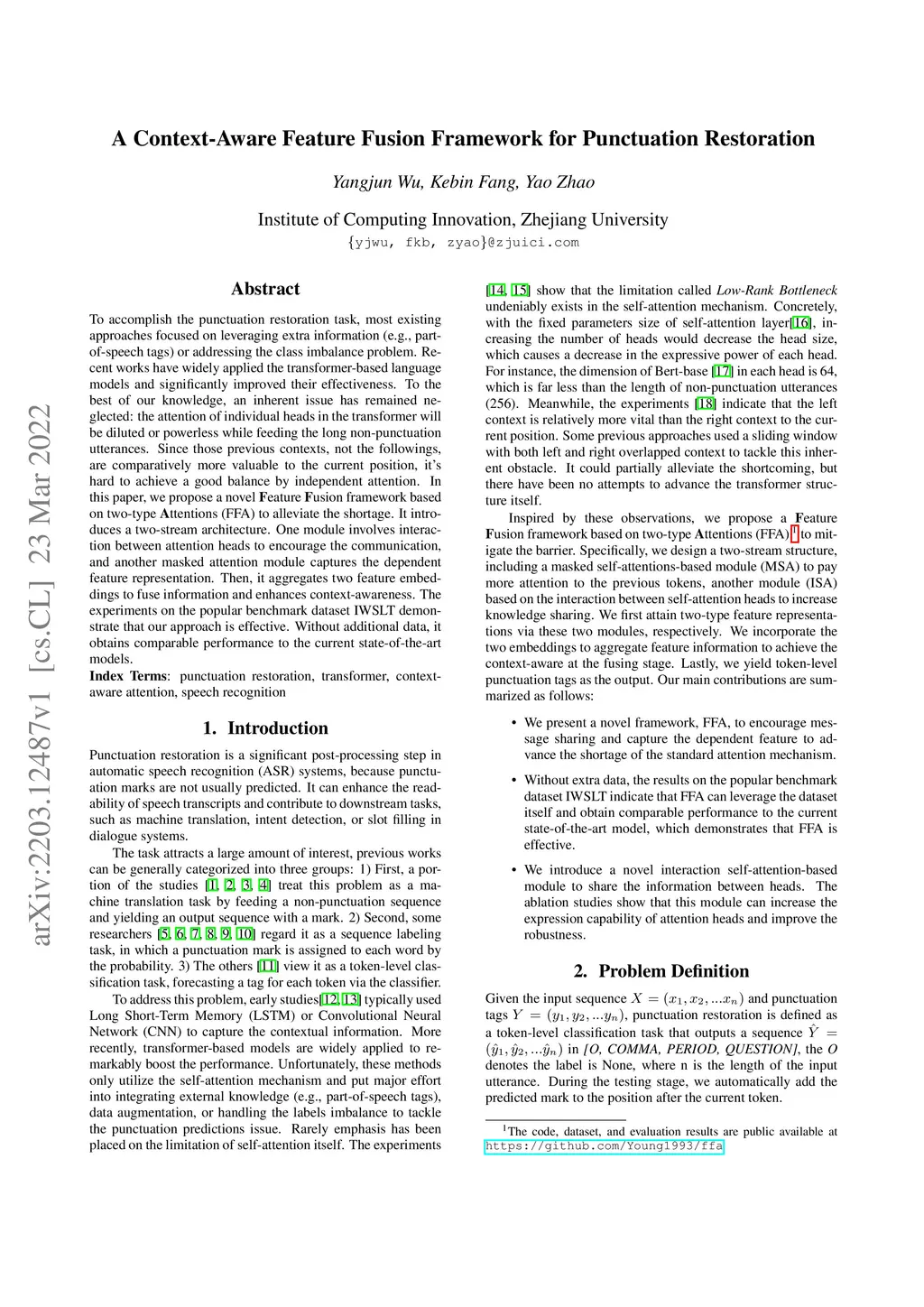 A Context-Aware Feature Fusion Framework for Punctuation Restoration