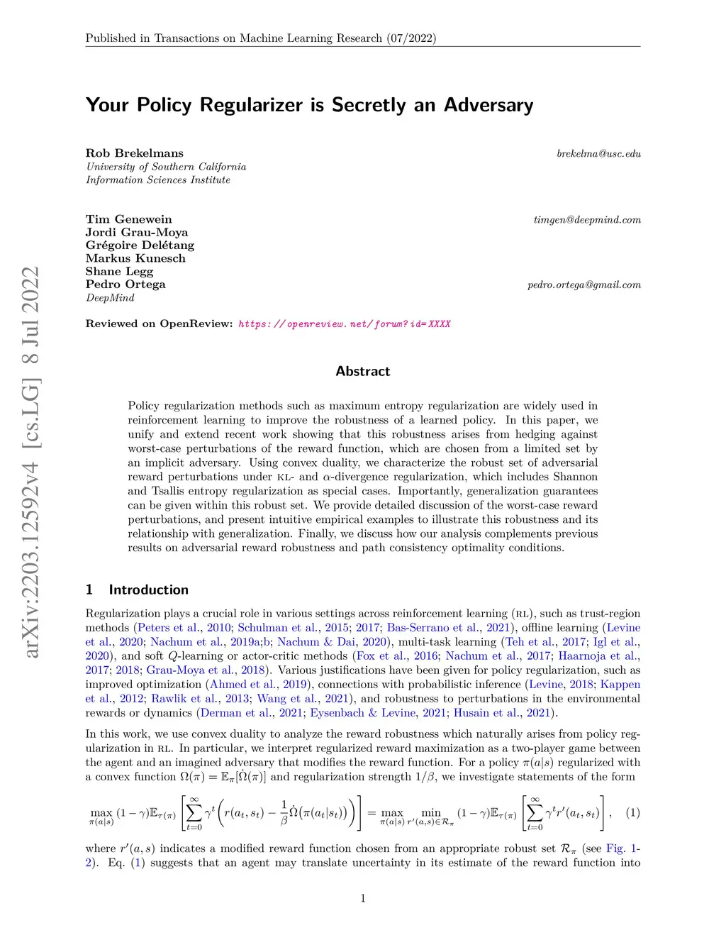 Your Policy Regularizer is Secretly an Adversary