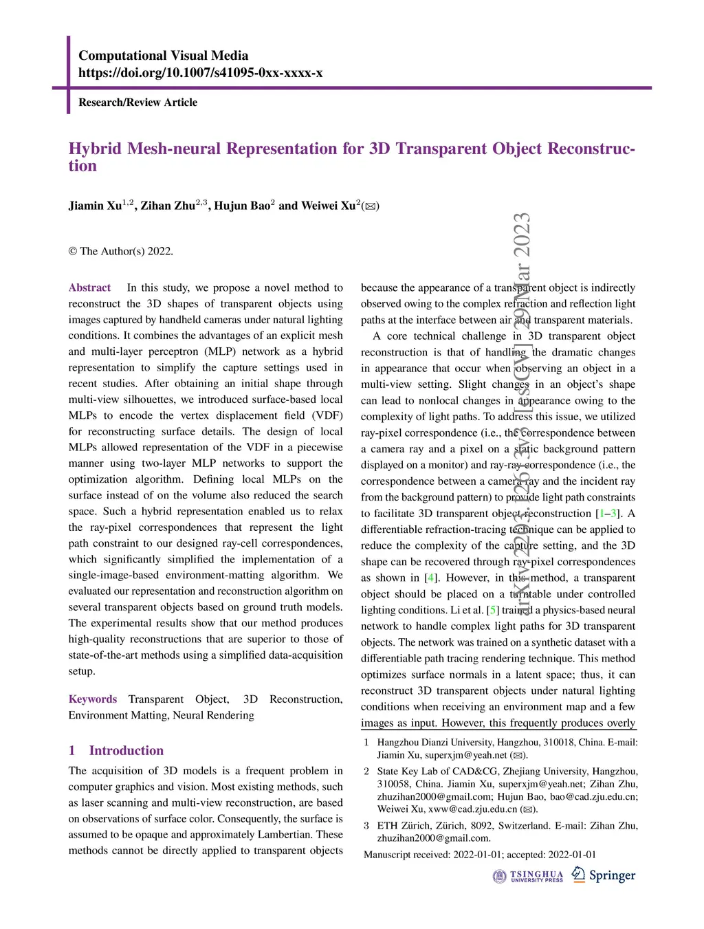 A Hybrid Mesh-neural Representation for 3D Transparent Object