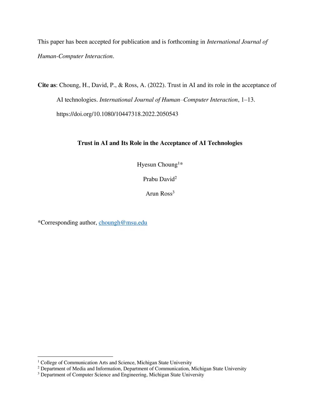 Trust in AI and Its Role in the Acceptance of AI Technologies