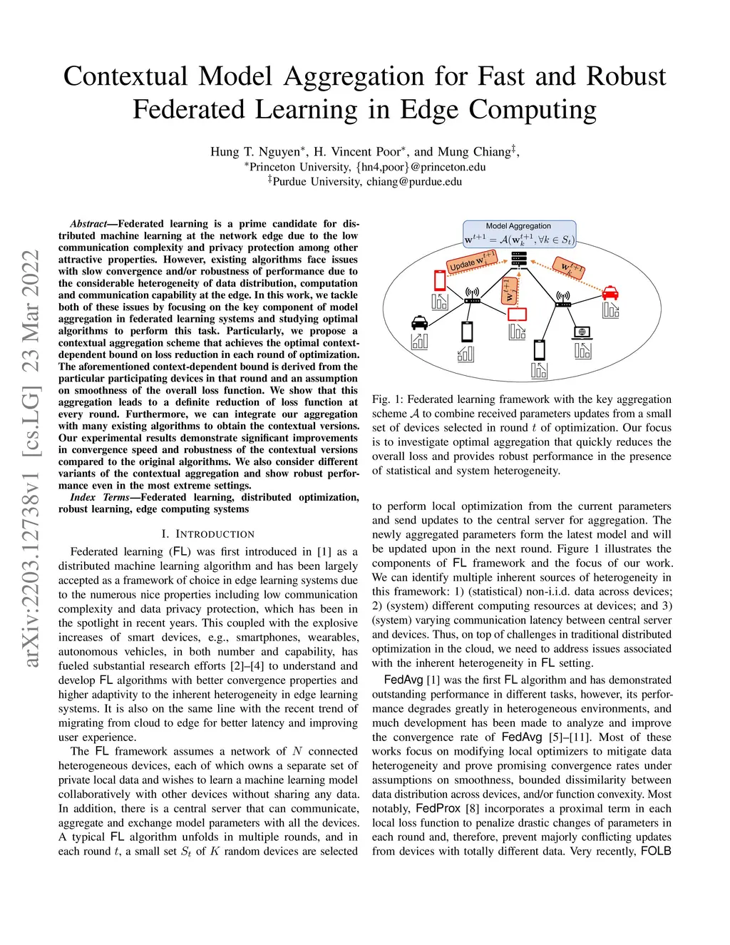 Federated learning is a prime candidate for distributed machine learning at the network edge due to the low communication complexity and privacy protection among other attractive properties. However, existing algorithms face issues with slow convergence and/or robustness of performance due to the considerable heterogeneity of data distribution, computation and communication capability at the edge. In this work, we tackle both of these issues by focusing on the key component of model aggregation in federated learning systems and studying optimal algorithms to perform this task. Particularly, we propose a contextual aggregation scheme that achieves the optimal context-dependent bound on loss reduction in each round of optimization. The aforementioned context-dependent bound is derived from the particular participating devices in that round and an assumption on smoothness of the overall loss function. We show that this aggregation leads to a definite reduction of loss function at every round. Furthermore, we can integrate our aggregation with many existing algorithms to obtain the contextual versions. Our experimental results demonstrate significant improvements in convergence speed and robustness of the contextual versions compared to the original algorithms. We also consider different variants of the contextual aggregation and show robust performance even in the most extreme settings.