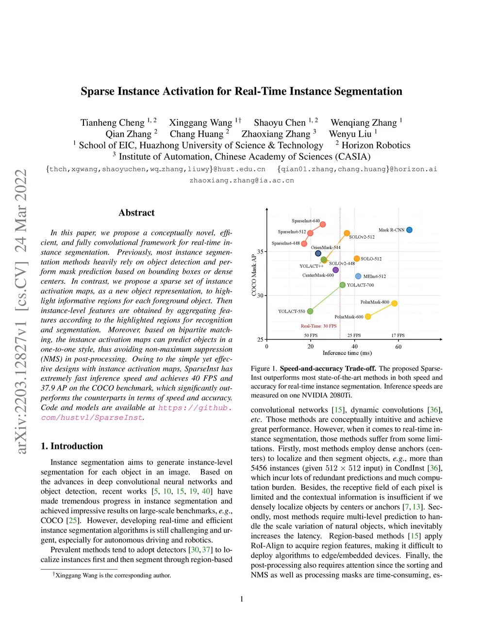 Sparse Instance Activation for Real-Time Instance Segmentation