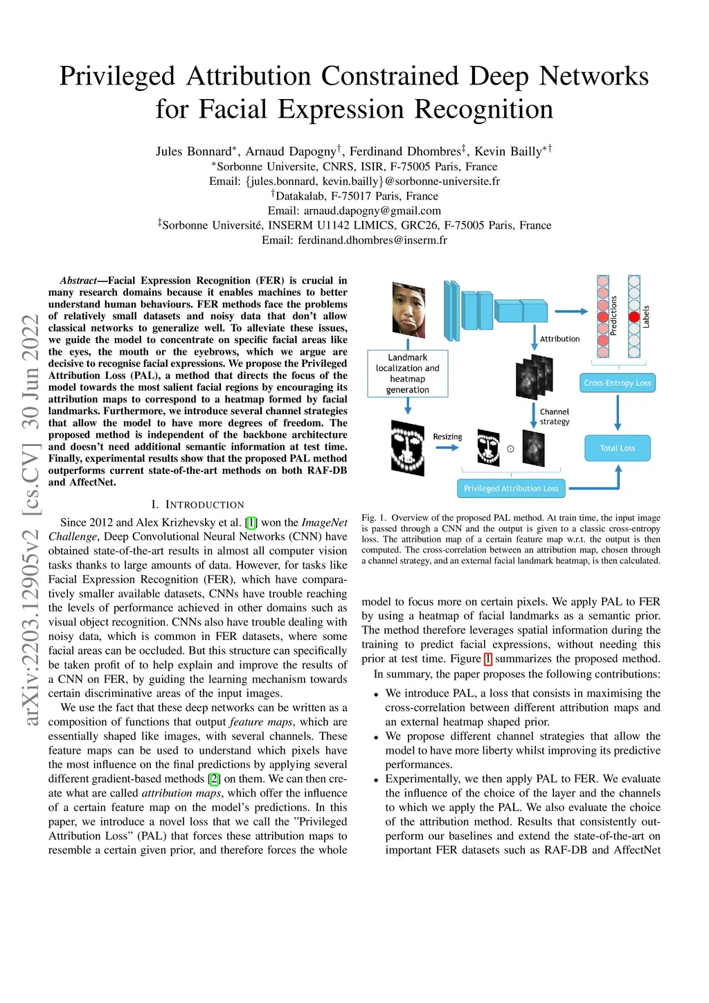 Facial Expression Recognition (FER) is crucial in many research domains because it enables machines to better understand human behaviours. FER methods face the problems of relatively small datasets and noisy data that don't allow classical networks to generalize well. To alleviate these issues, we guide the model to concentrate on specific facial areas like the eyes, the mouth or the eyebrows, which we argue are decisive to recognise facial expressions. We propose the Privileged Attribution Loss (PAL), a method that directs the attention of the model towards the most salient facial regions by encouraging its attribution maps to correspond to a heatmap formed by facial landmarks. Furthermore, we introduce several channel strategies that allow the model to have more degrees of freedom. The proposed method is independent of the backbone architecture and doesn't need additional semantic information at test time. Finally, experimental results show that the proposed PAL method outperforms current state-of-the-art methods on both RAF-DB and AffectNet.