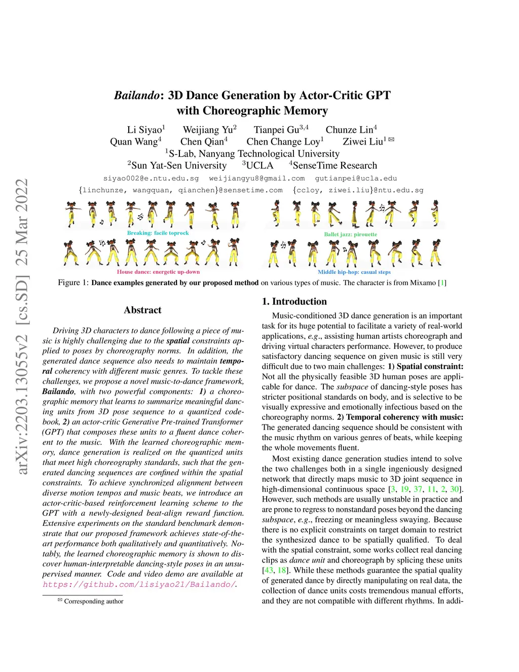 Bailando: 3D Dance Generation by Actor-Critic GPT with Choreographic