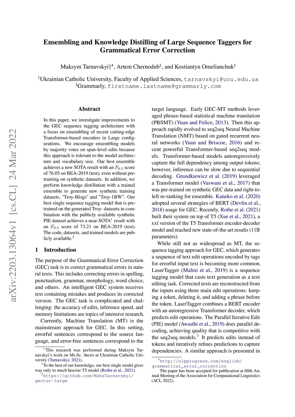 Grammatical Error Correction