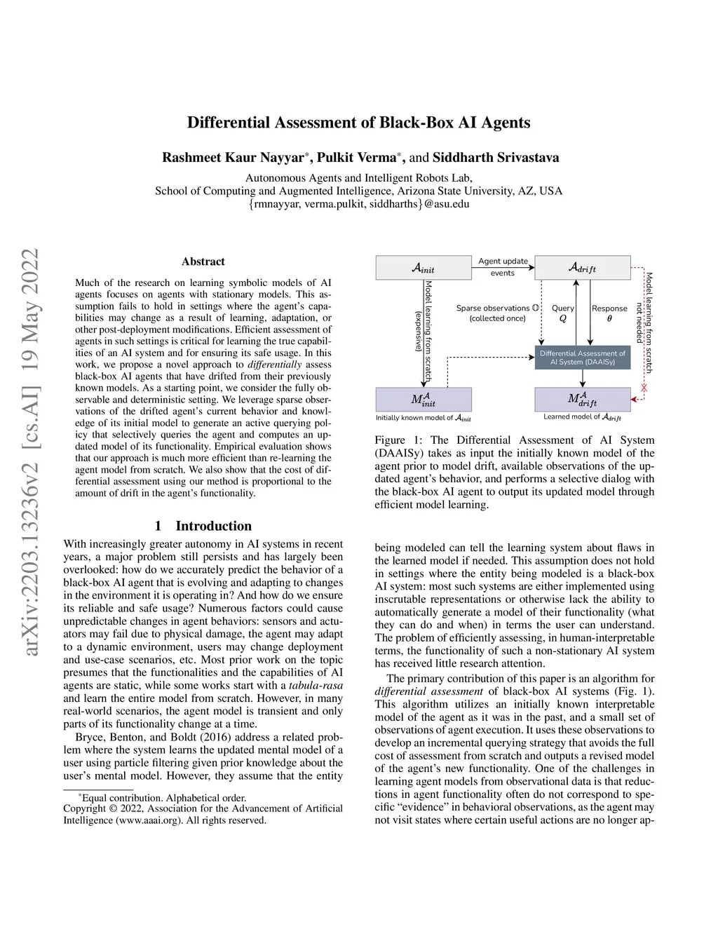 Much of the research on learning symbolic models of AI agents focuses on agents with stationary models. This assumption fails to hold in settings where the agent's capabilities may change as a result of learning, adaptation, or other post-deployment modifications. Efficient assessment of agents in such settings is critical for learning the true capabilities of an AI system and for ensuring its safe usage. In this work, we propose a novel approach to "differentially" assess black-box AI agents that have drifted from their previously known models. As a starting point, we consider the fully observable and deterministic setting. We leverage sparse observations of the drifted agent's current behavior and knowledge of its initial model to generate an active querying policy that selectively queries the agent and computes an updated model of its functionality. Empirical evaluation shows that our approach is much more efficient than re-learning the agent model from scratch. We also show that the cost of differential assessment using our method is proportional to the amount of drift in the agent's functionality.