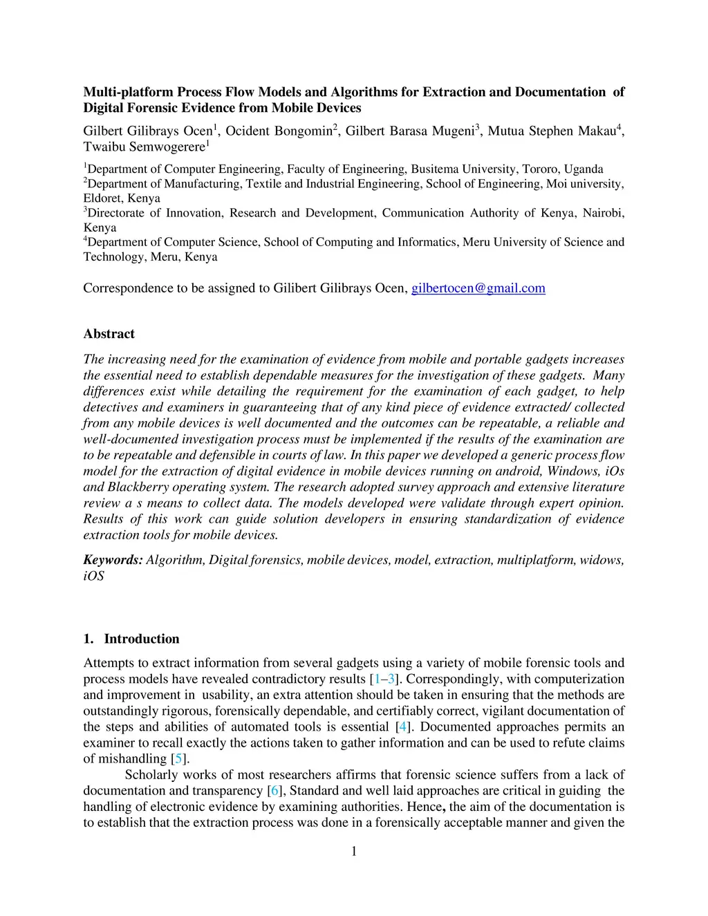 The increasing need for the examination of evidence from mobile and portable gadgets increases the essential need to establish dependable measures for the investigation of these gadgets. Many differences exist while detailing the requirement for the examination of each gadget, to help detectives and examiners in guaranteeing that of any kind piece of evidence extracted/ collected from any mobile devices is well documented and the outcomes can be repeatable, a reliable and well-documented investigation process must be implemented if the results of the examination are to be repeatable and defensible in courts of law. In this paper we developed a generic process flow model for the extraction of digital evidence in mobile devices running on android, Windows, iOs and Blackberry operating system. The research adopted survey approach and extensive literature review a s means to collect data. The models developed were validate through expert opinion. Results of this work can guide solution developers in ensuring standardization of evidence extraction tools for mobile devices.