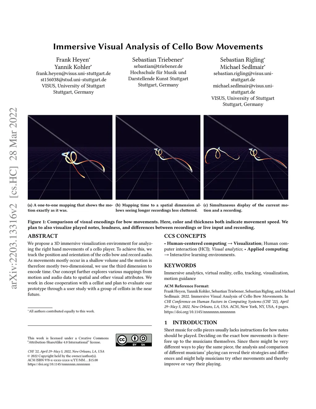 Immersive Visual Analysis of Cello Bow Movements