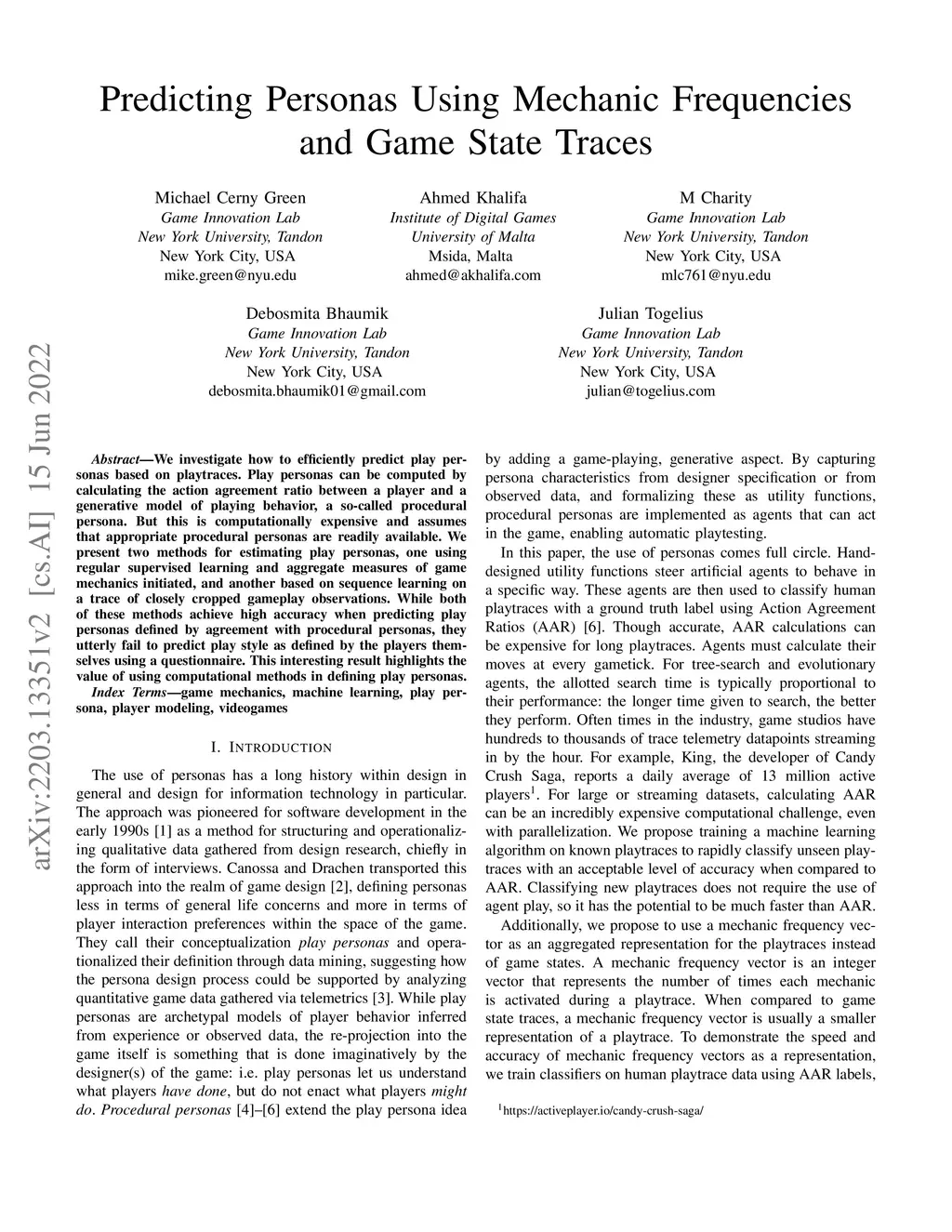 Predicting Personas Using Mechanic Frequencies and Game State Traces