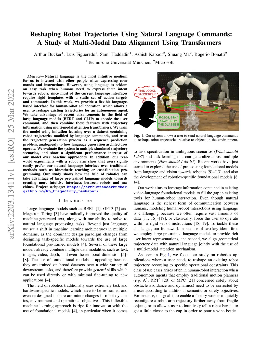 Reshaping Robot Trajectories Using Natural Language Commands: A Study of