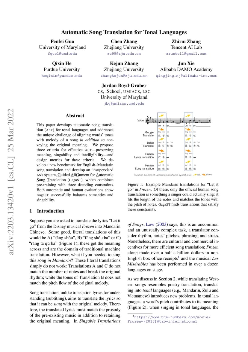 This paper develops automatic song translation (AST) for tonal languages and addresses the unique challenge of aligning words' tones with melody of a song in addition to conveying the original meaning. We propose three criteria for effective AST -- preserving meaning, singability and intelligibility -- and design metrics for these criteria. We develop a new benchmark for English--Mandarin song translation and develop an unsupervised AST system, Guided AliGnment for Automatic Song Translation (GagaST), which combines pre-training with three decoding constraints. Both automatic and human evaluations show GagaST successfully balances semantics and singability.