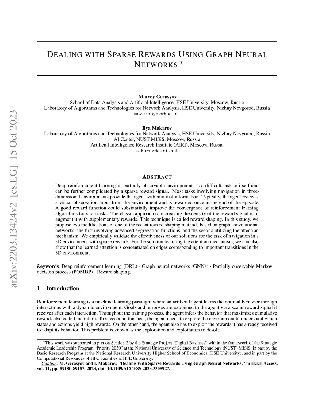 Dealing with Sparse Rewards Using Graph Neural Networks