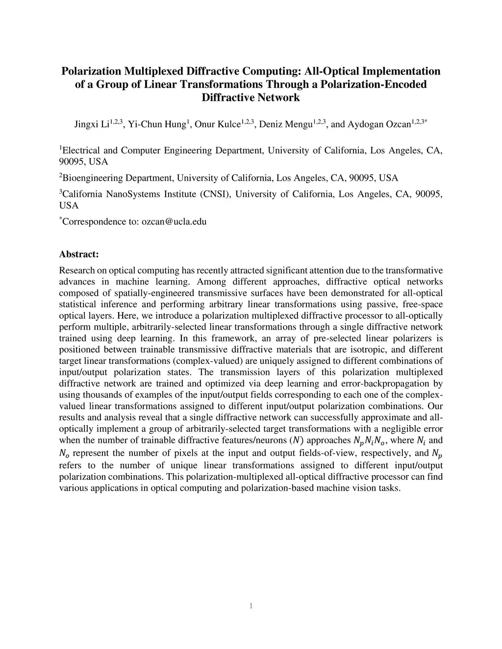 Polarization Multiplexed Diffractive Computing: All-Optical