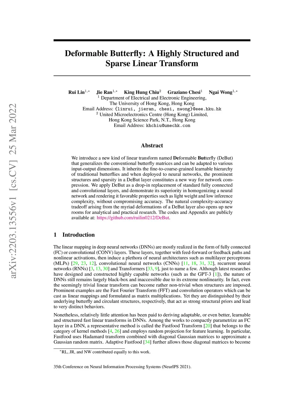 Deformable Butterfly: A Highly Structured and Sparse Linear Transform