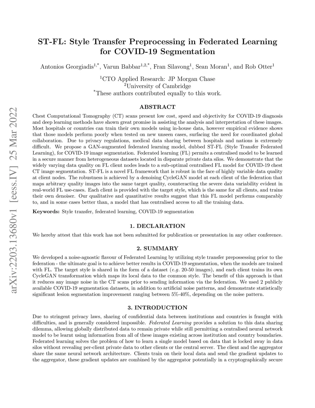 ST-FL: Style Transfer Preprocessing in Federated Learning for COVID-19