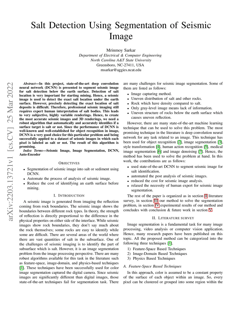Salt Detection Using Segmentation of Seismic Image