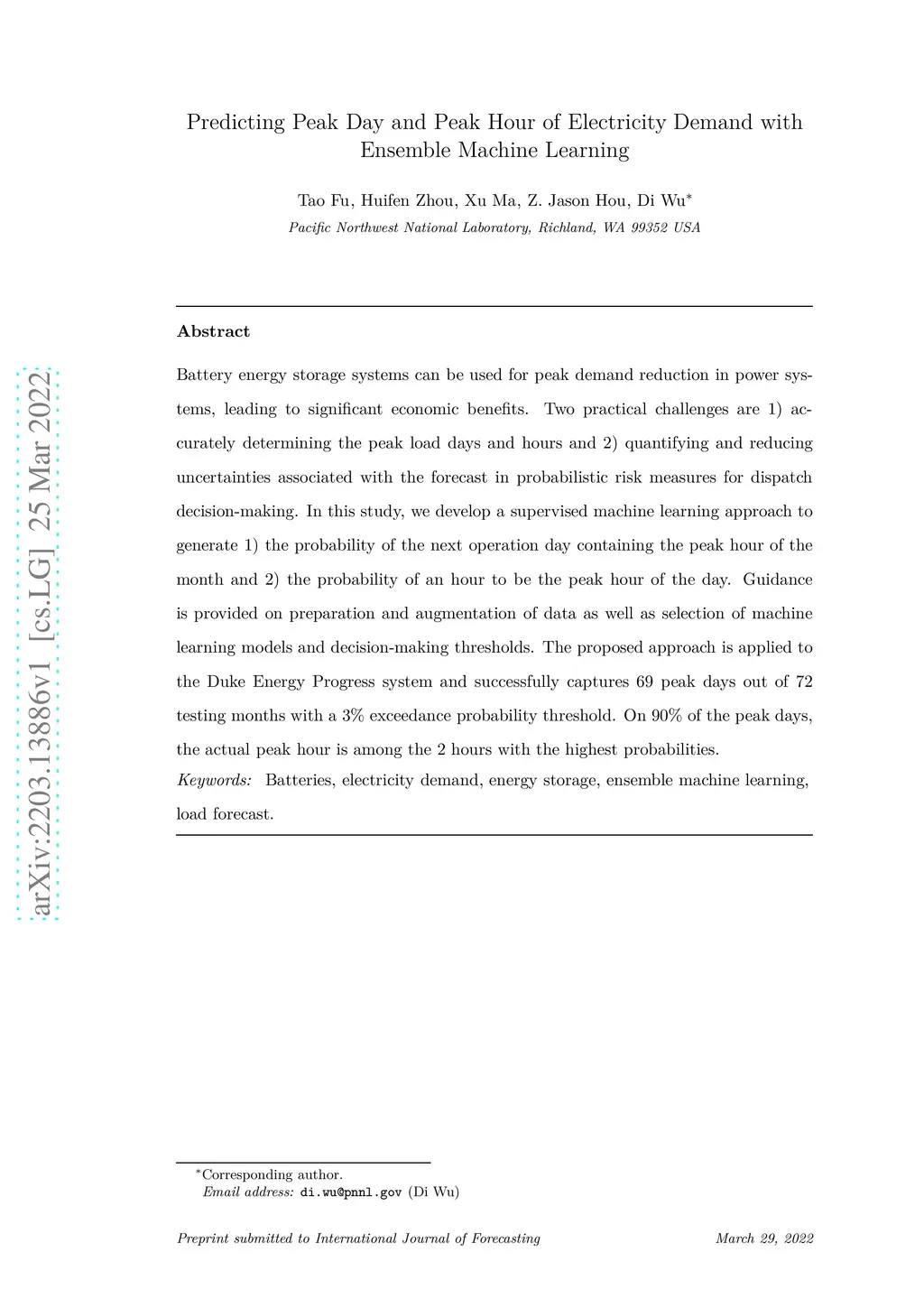 Predicting Peak Day and Peak Hour of Electricity Demand with Ensemble