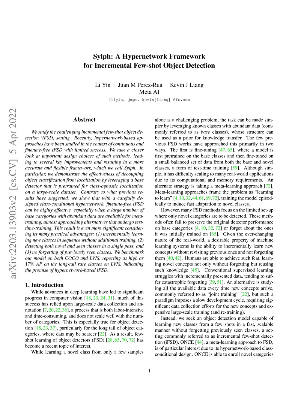 Sylph: A Hypernetwork Framework for Incremental Few-shot Object