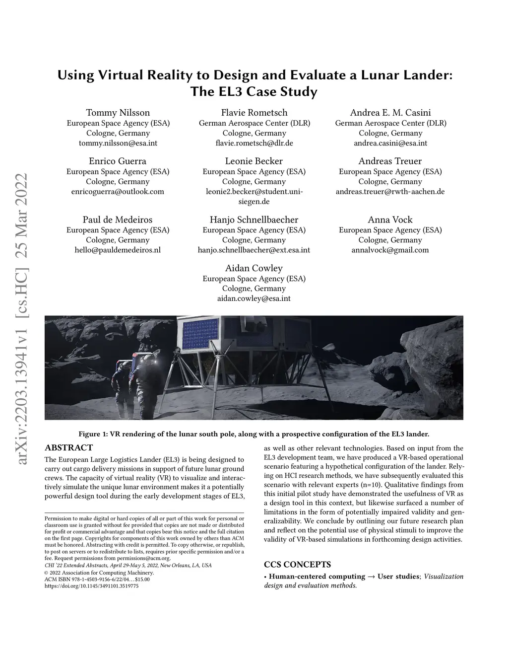 Using Virtual Reality to Design and Evaluate a Lunar Lander: The EL3