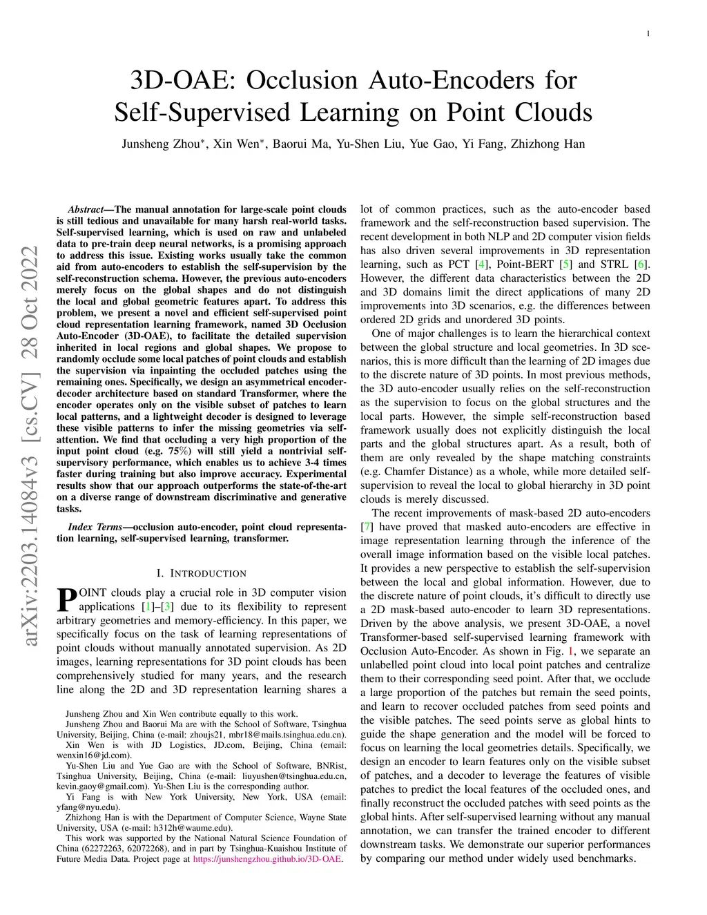3D-OAE: Occlusion Auto-Encoders for Self-Supervised Learning on Point