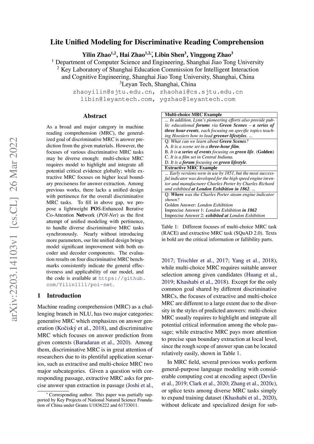 Lite Unified Modeling for Discriminative Reading Comprehension
