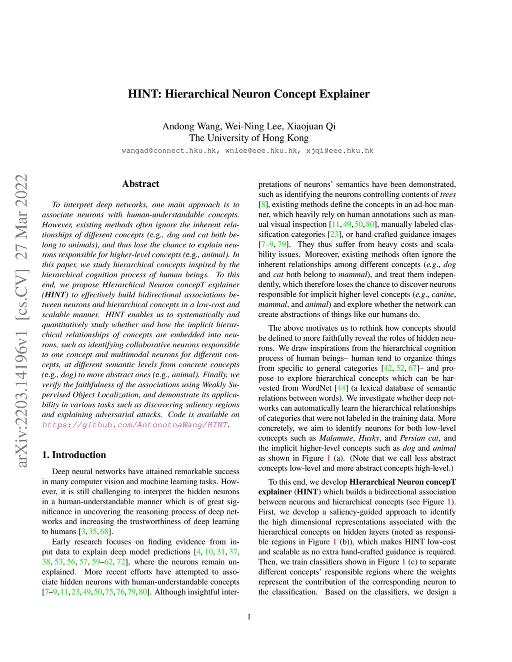 To interpret deep networks, one main approach is to associate neurons with human-understandable concepts. However, existing methods often ignore the inherent relationships of different concepts (e.g., dog and cat both belong to animals), and thus lose the chance to explain neurons responsible for higher-level concepts (e.g., animal). In this paper, we study hierarchical concepts inspired by the hierarchical cognition process of human beings. To this end, we propose HIerarchical Neuron concepT explainer (HINT) to effectively build bidirectional associations between neurons and hierarchical concepts in a low-cost and scalable manner. HINT enables us to systematically and quantitatively study whether and how the implicit hierarchical relationships of concepts are embedded into neurons, such as identifying collaborative neurons responsible to one concept and multimodal neurons for different concepts, at different semantic levels from concrete concepts (e.g., dog) to more abstract ones (e.g., animal). Finally, we verify the faithfulness of the associations using Weakly Supervised Object Localization, and demonstrate its applicability in various tasks such as discovering saliency regions and explaining adversarial attacks. Code is available on https://github.com/AntonotnaWang/HINT.