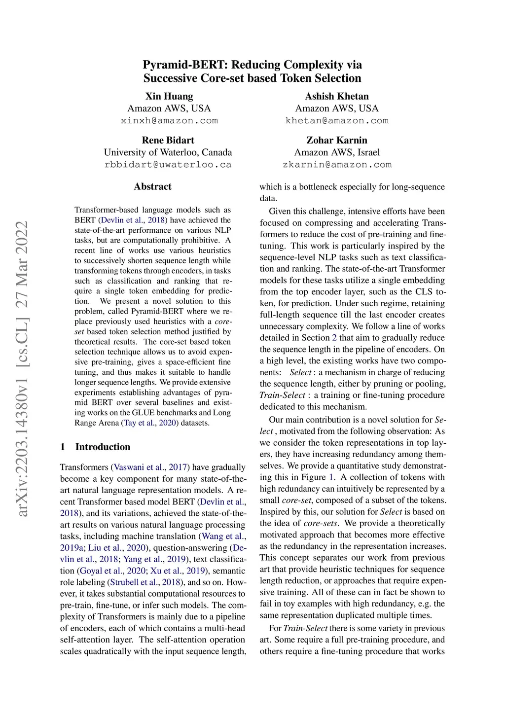 Pyramid-BERT: Reducing Complexity via Successive Core-set based Token