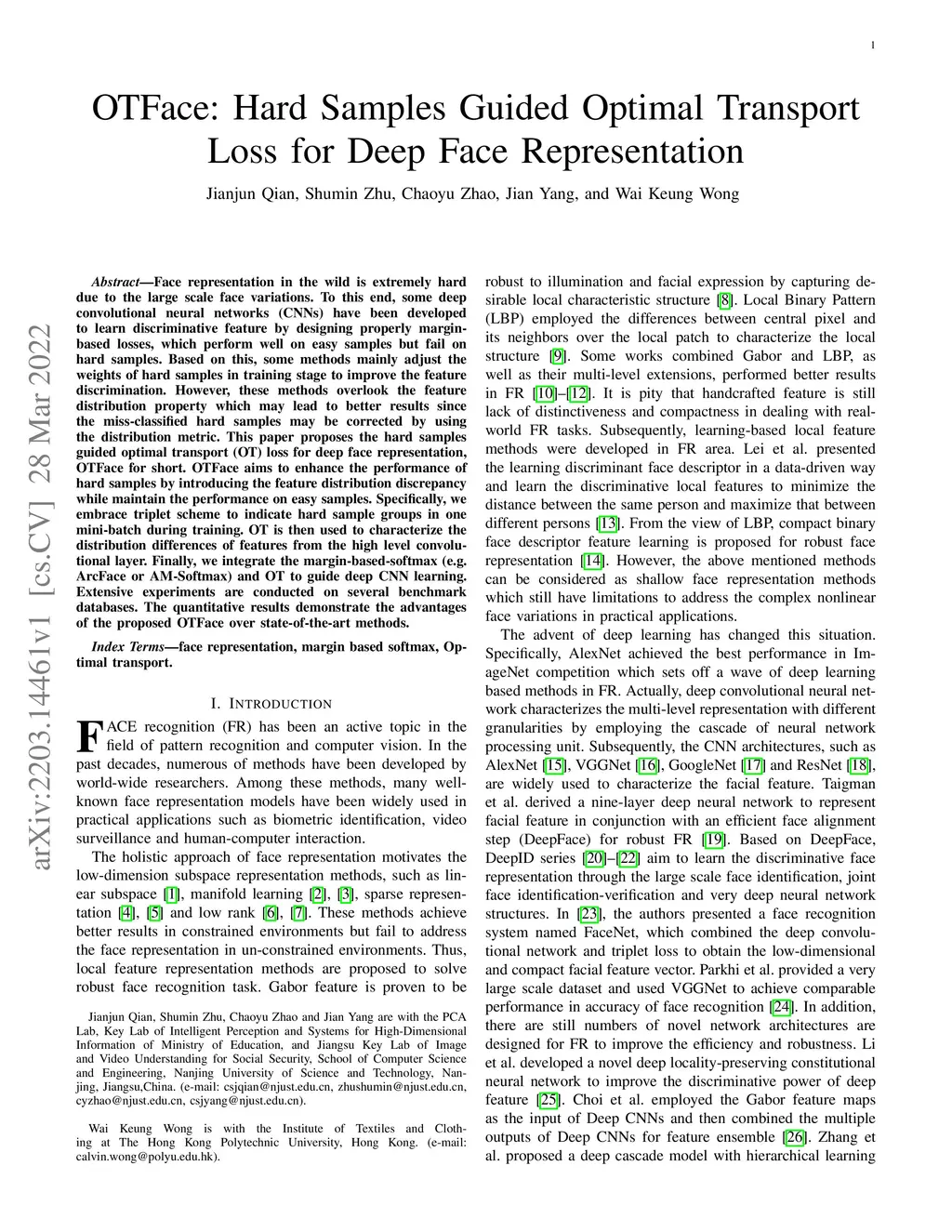 OTFace: Hard Samples Guided Optimal Transport Loss for Deep Face