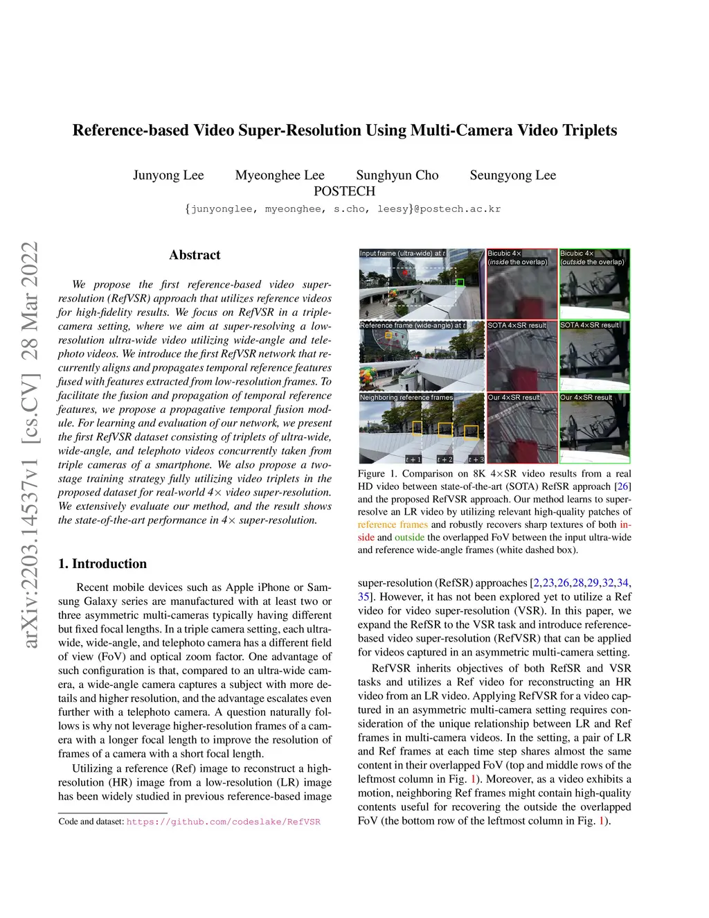 Reference-based Video Super-Resolution Using Multi-Camera Video Triplets