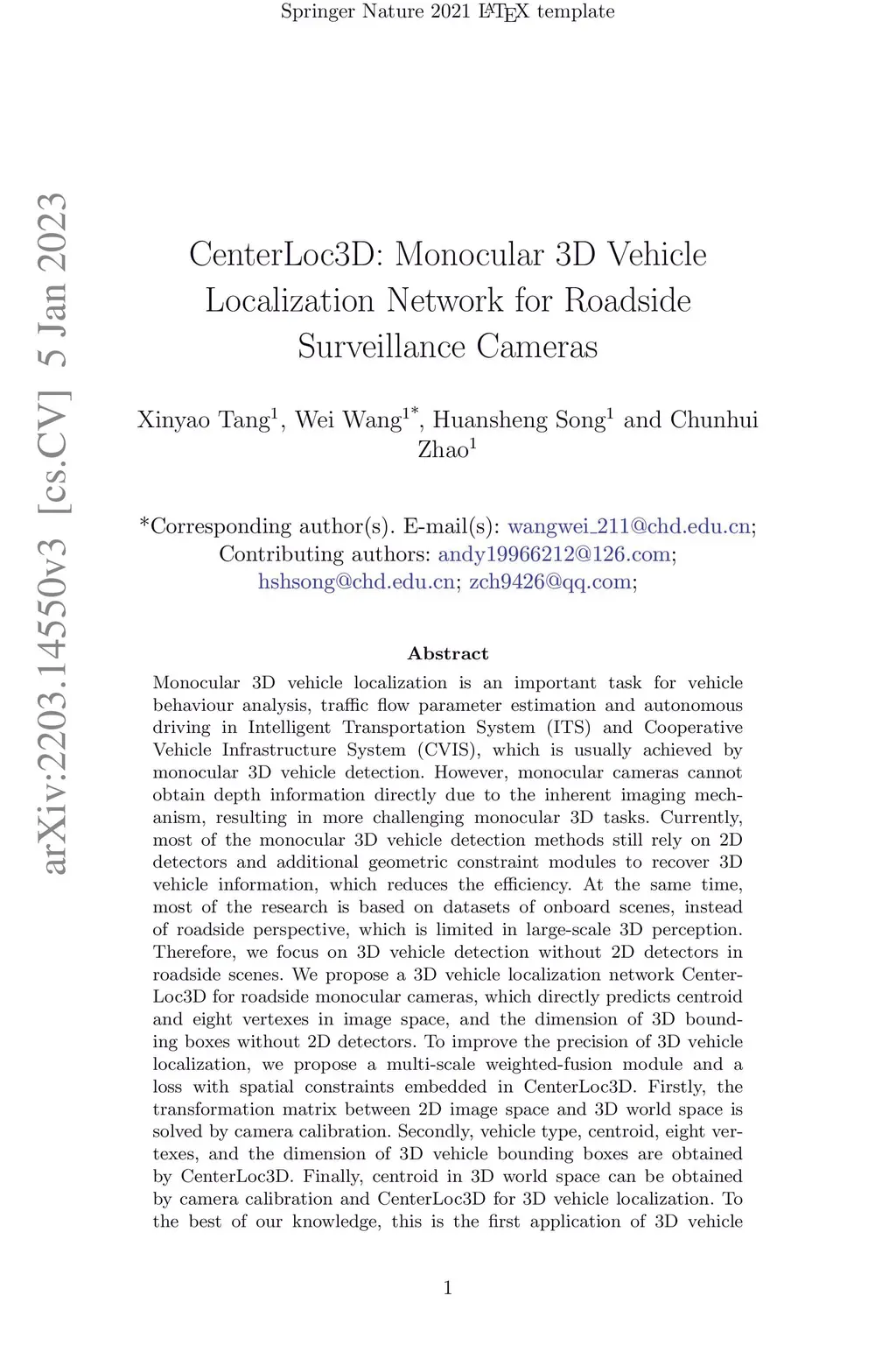 CenterLoc3D: Monocular 3D Vehicle Localization Network for Roadside