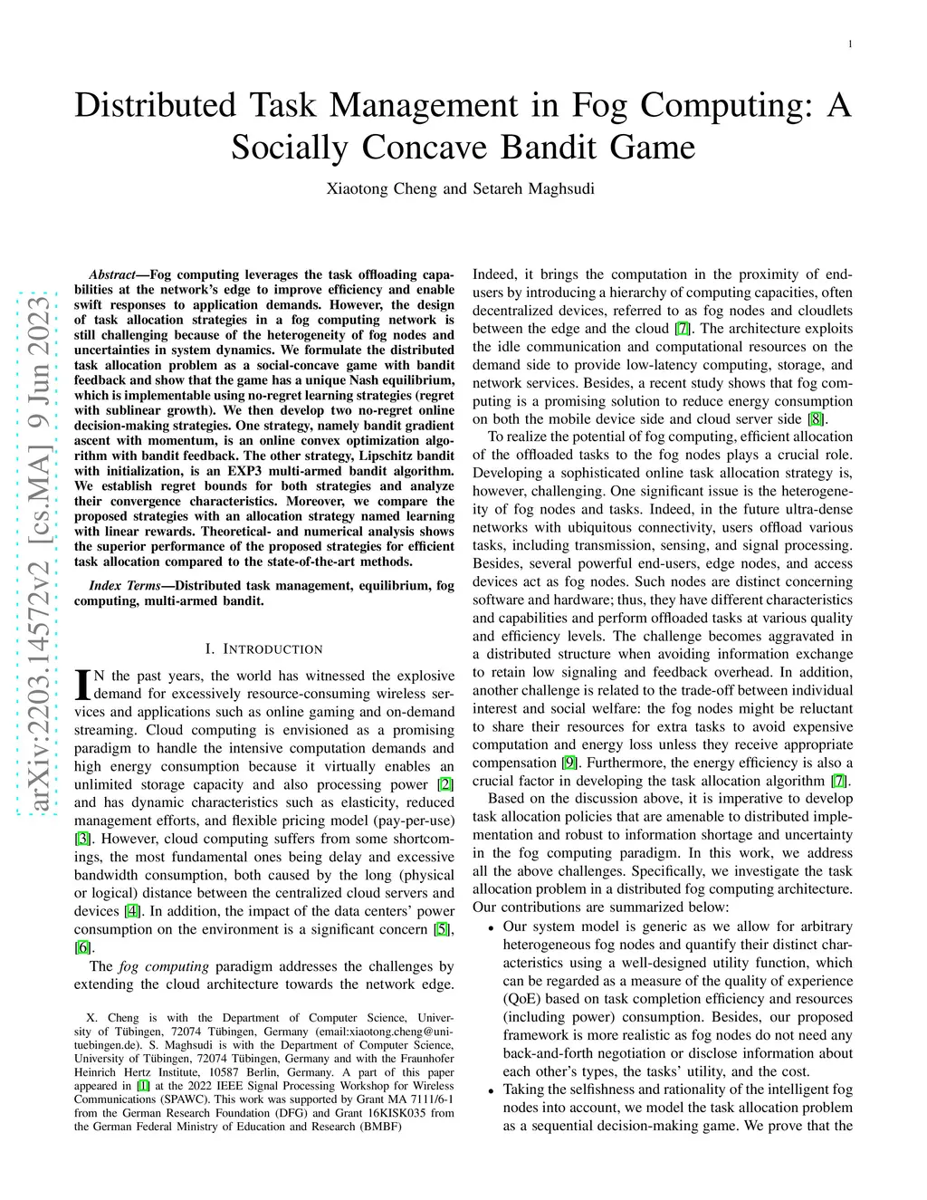 Distributed Task Management in Fog Computing: A Socially Concave Bandit