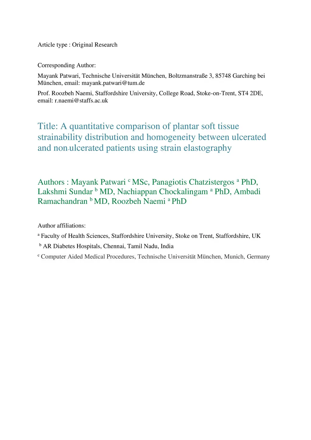 The primary objective of this study was to develop a method that allows accurate quantification of plantar soft tissue stiffness distribution and homogeneity. The secondary aim of this study is to investigate if the differences in soft tissue stiffness distribution and homogeneity can be detected between ulcerated and non-ulcerated foot. Novel measures of individual pixel stiffness, named as quantitative strainability (QS) and relative strainability (RS) were developed. SE data obtained from 39 (9 with active diabetic foot ulcers) patients with diabetic neuropathy. The patients with active diabetic foot ulcer had wound in parts of the foot other than the first metatarsal head and the heel where the elastography measures were conducted. RS was used to measure changes and gradients in the stiffness distribution of plantar soft tissues in participants with and without active diabetic foot ulcer. The plantar soft tissue homogeneity in superior-inferior direction in the left forefoot was significantly (p<0.05) higher in ulcerated group compared to non-ulcerated group. The assessment of homogeneity showed potentials to further explain the nature of the change in tissue that can increase internal stress . This can have implications in assessing the vulnerability to soft tissue damage and ulceration in diabetes.