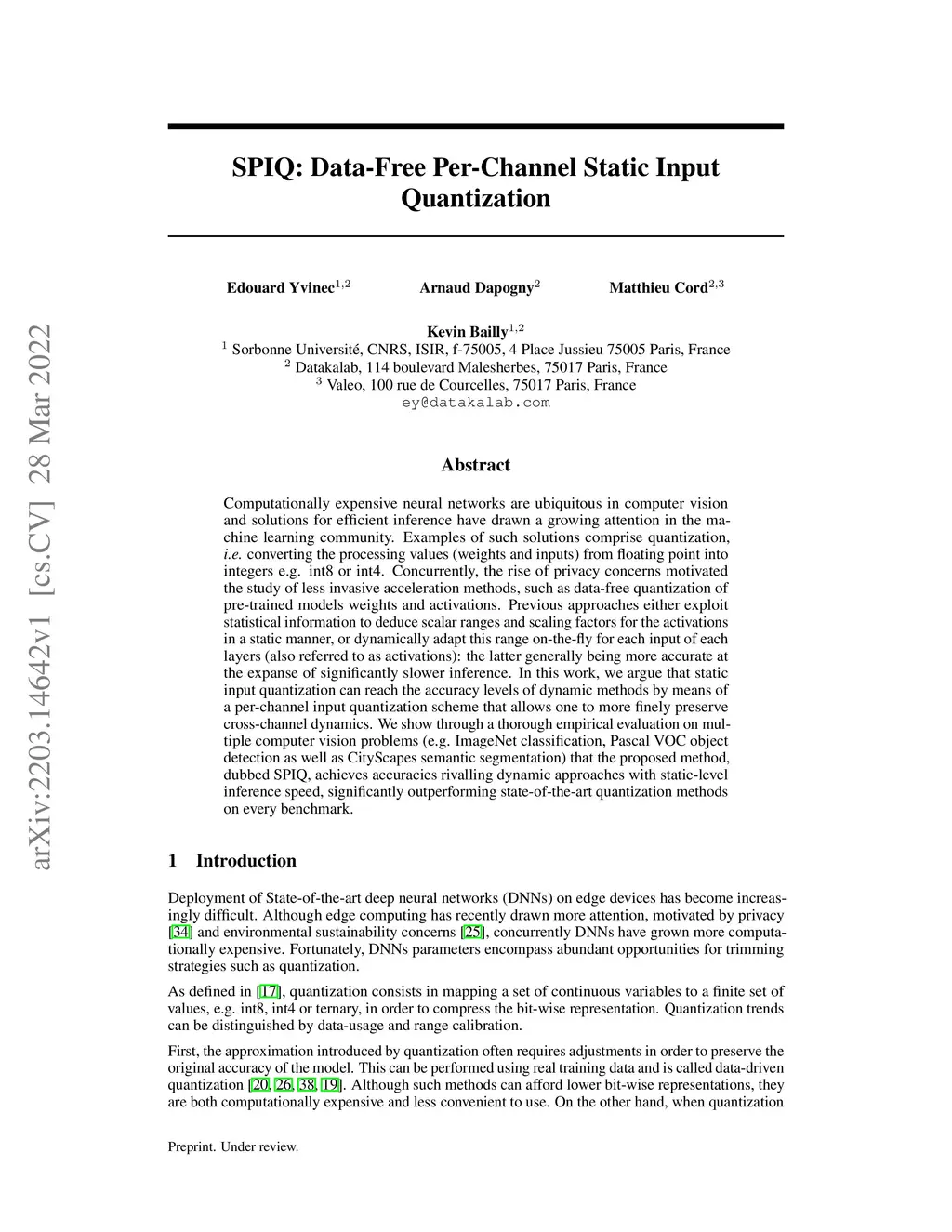 SPIQ: Data-Free Per-Channel Static Input Quantization