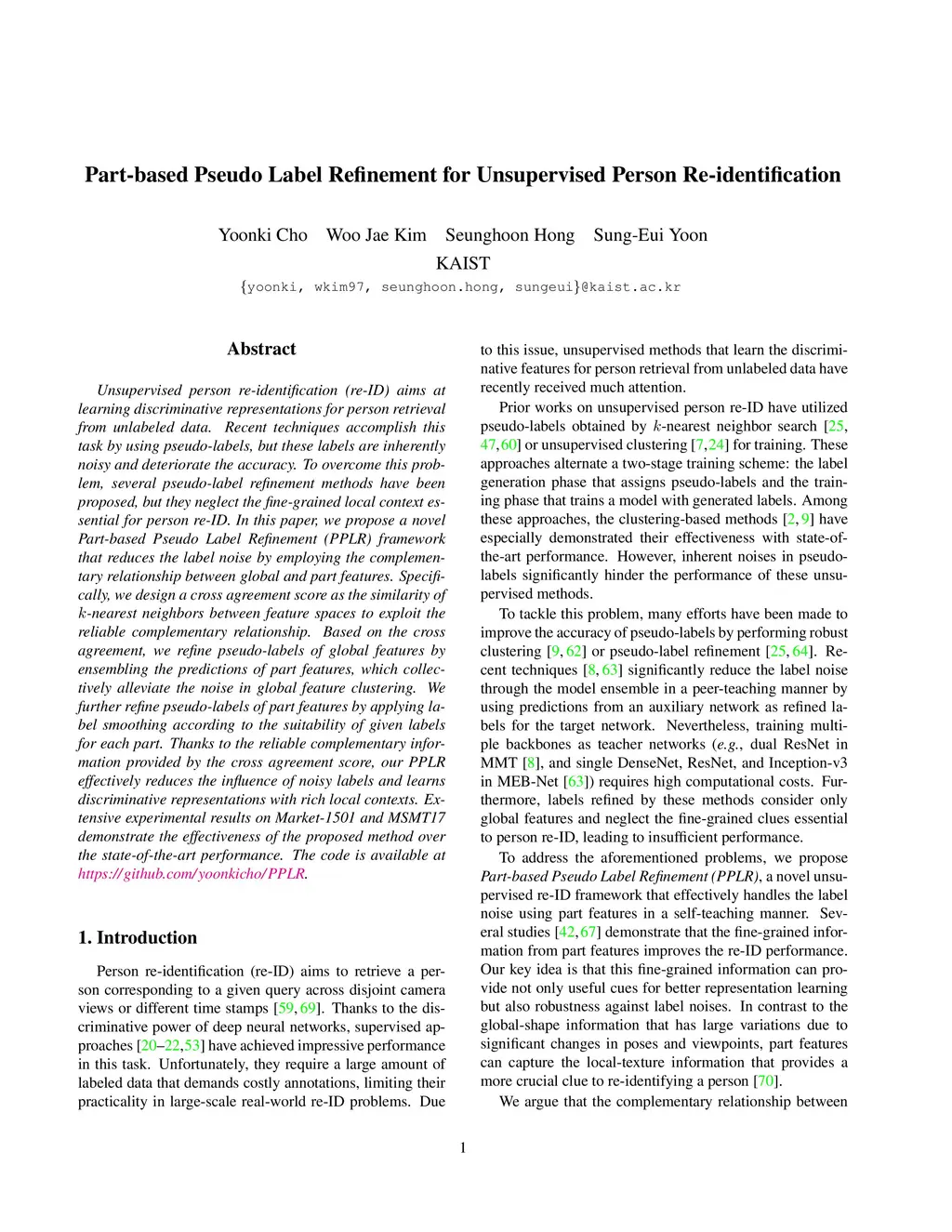 Part-based Pseudo Label Refinement for Unsupervised Person