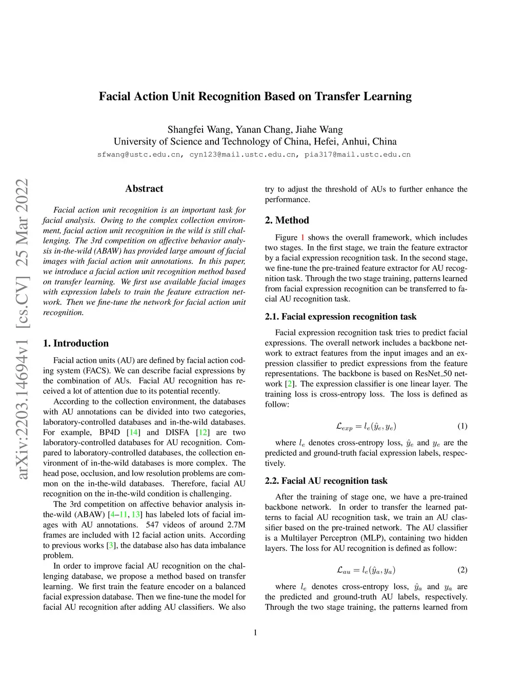 Facial Action Unit Recognition Based on Transfer Learning