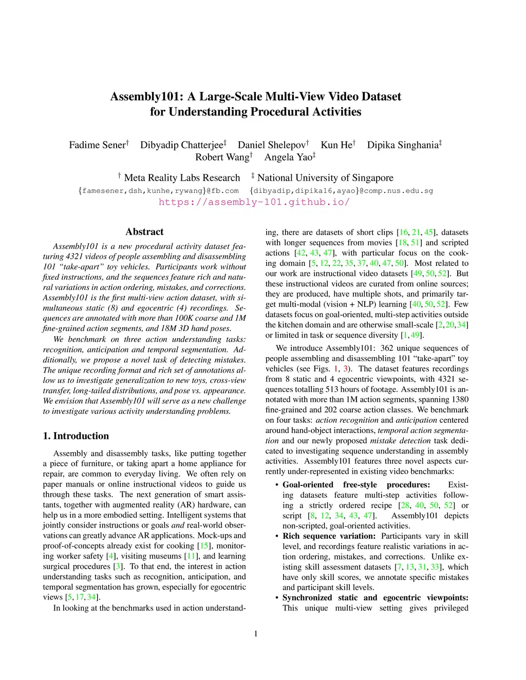 Assembly101: A Large-Scale Multi-View Video Dataset for Understanding