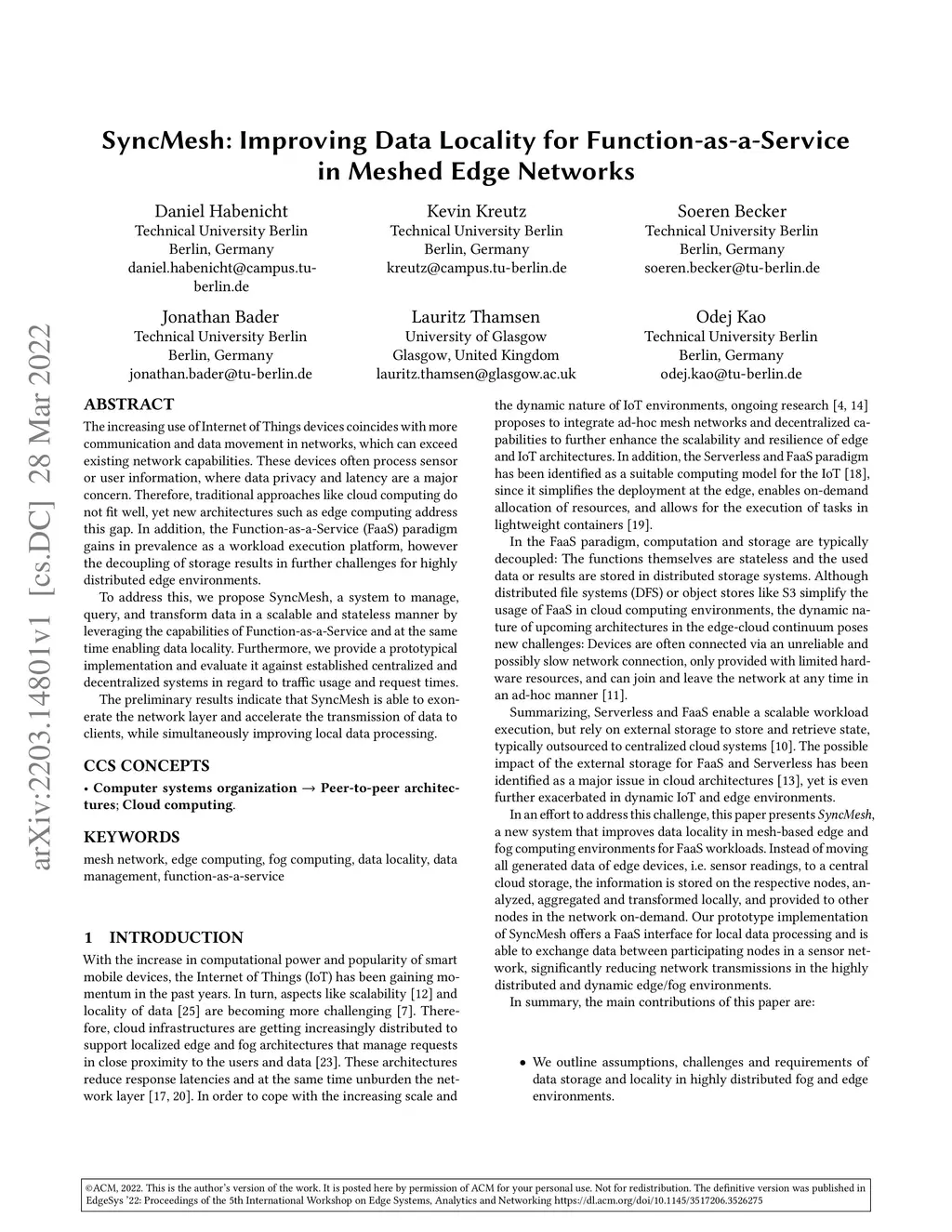 SyncMesh: Improving Data Locality for Function-as-a-Service in Meshed