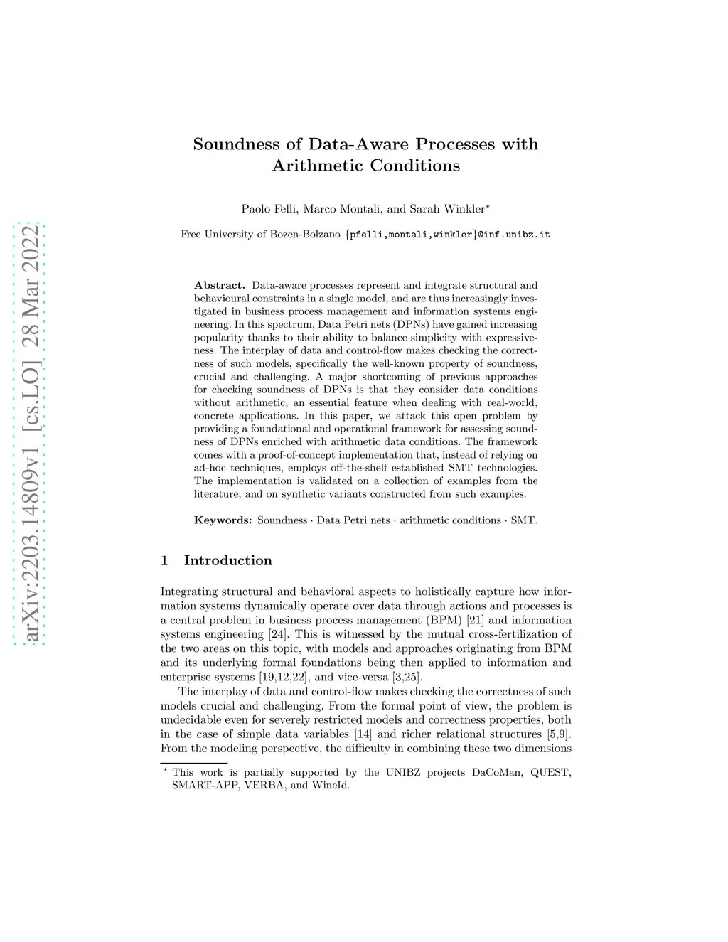 Soundness of Data-Aware Processes with Arithmetic Conditions