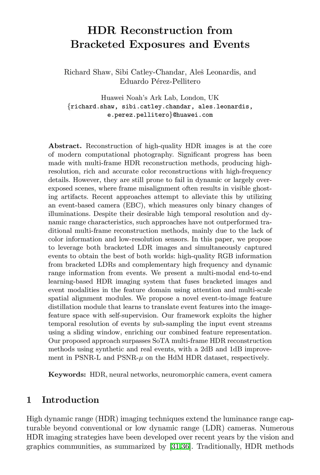 Reconstruction of high-quality HDR images is at the core of modern computational photography. Significant progress has been made with multi-frame HDR reconstruction methods, producing high-resolution, rich and accurate color reconstructions with high-frequency details. However, they are still prone to fail in dynamic or largely over-exposed scenes, where frame misalignment often results in visible ghosting artifacts. Recent approaches attempt to alleviate this by utilizing an event-based camera (EBC), which measures only binary changes of illuminations. Despite their desirable high temporal resolution and dynamic range characteristics, such approaches have not outperformed traditional multi-frame reconstruction methods, mainly due to the lack of color information and low-resolution sensors. In this paper, we propose to leverage both bracketed LDR images and simultaneously captured events to obtain the best of both worlds: high-quality RGB information from bracketed LDRs and complementary high frequency and dynamic range information from events. We present a multi-modal end-to-end learning-based HDR imaging system that fuses bracketed images and event modalities in the feature domain using attention and multi-scale spatial alignment modules. We propose a novel event-to-image feature distillation module that learns to translate event features into the image-feature space with self-supervision. Our framework exploits the higher temporal resolution of events by sub-sampling the input event streams using a sliding window, enriching our combined feature representation. Our proposed approach surpasses SoTA multi-frame HDR reconstruction methods using synthetic and real events, with a 2dB and 1dB improvement in PSNR-L and PSNR-mu on the HdM HDR dataset, respectively.